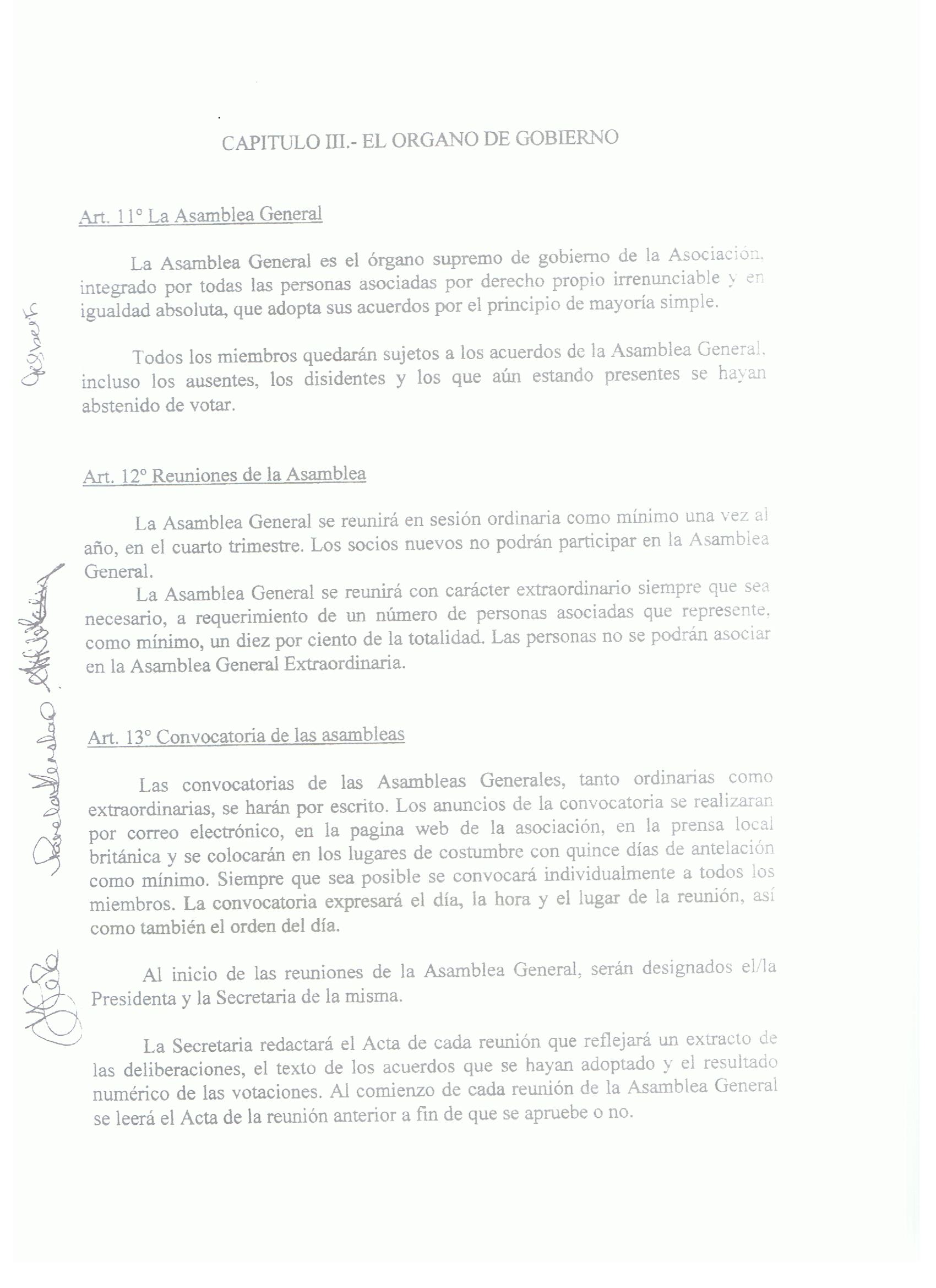 | After many weeks of drafting and discussion with the Lawyer, the Committee have now agreed the way forward regarding the Constitution. Please see [links below to] the Spanish and English version of the Constitution and new Internal Regulations of the Association (the Internal Regs). We will only outline the reasons why these documents are so different from what you have seen in the past but a full explanation will be given at the monthly meeting on the 6th January. The reason for not going into details now is so that you are not bogged down with too much reading now and can ask questions on why this has come about at the meeting.