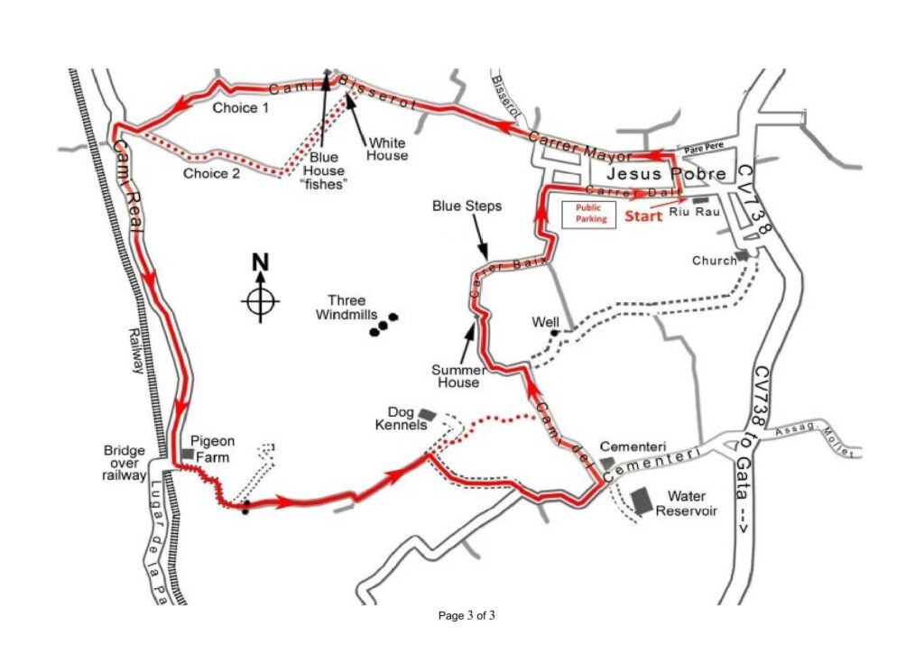 | Directions to Meeting Point | Car park next to Riu Rau market area From Moraira: Drive to Javea all the way to the Ferrobox roundabout on the CV734. Turn left there towards Gata; From Javea: Leave Jávea on the CV734 towards Gata; Turn right at the second roundabout onto the CV738 towards Jesús Pobre. All:Turn right at the FOURTH roundabout onto the CV738 towards Jesus Pobre. In Jesus Pobre go past the pharmacy (on your left) and immediately after the pedestrian crossing turn left into Carrer Pare Pere. Continue up this narrow street, passing the square (on your left) and take the next left into Carrer Ametllers. AT THE END OF THE STREET AT THE STOP SIGN GO STRAIGHT AHEAD AND THEN IMMEDIATELY RIGHT INTO THE PARKING. | ||