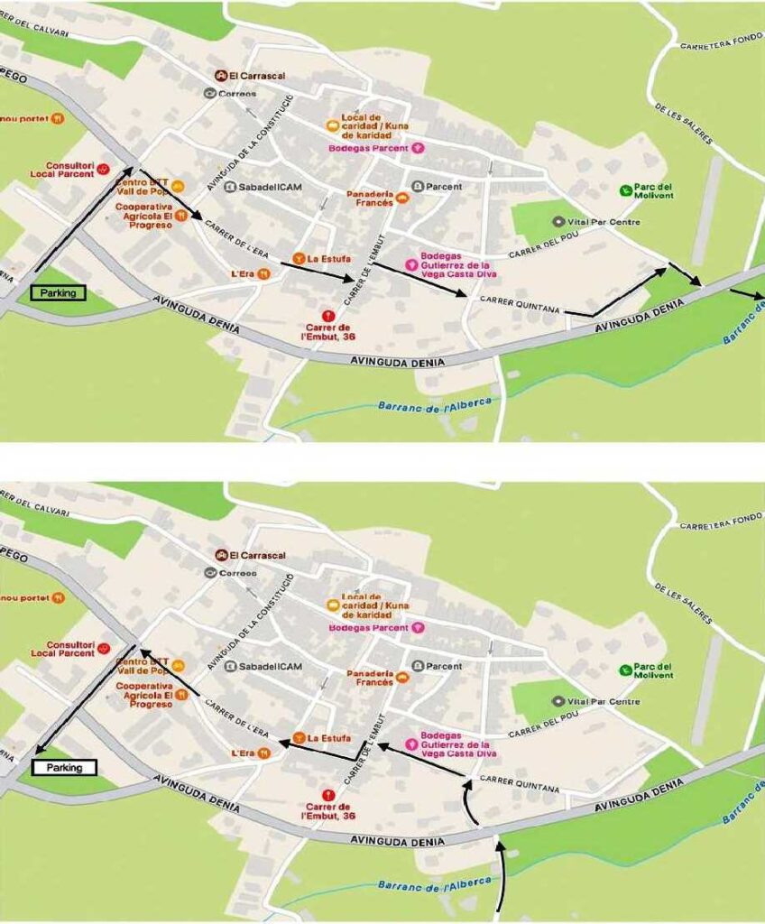 - Going towards Pego from the meeting point, take the first road on the right ‘Av de la Constitucio’. Walk