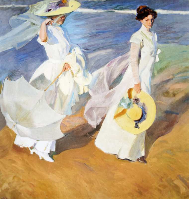 Almost all of Joaquín’s work is oil on canvas and was mostly done outdoors under the Mediterranean sun; he is known as a “painter of light”. He painted people at work and play, did a lot of landscapes and garden scenes, and accepted many commissions for portraits. His family (wife and three children) were often his subjects.