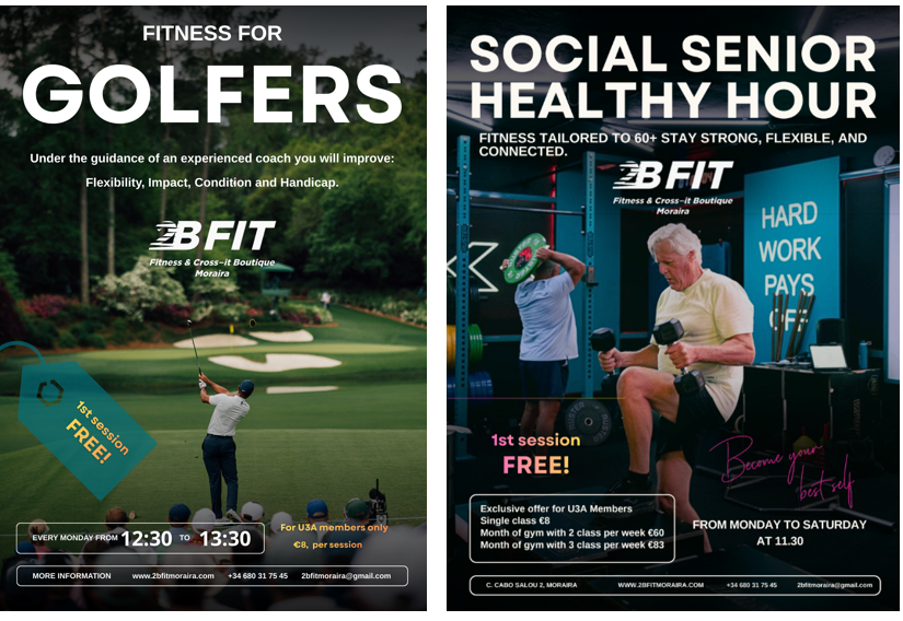 Julie at 2BFit Moraira, runs a Social Senior Hour from Monday to Saturday at 11:30 am, (C. Cabo Salou 2, Moraira) designed specifically for seniors who want to stay active, enjoy gentle exercise, and connect socially in a friendly group environment.