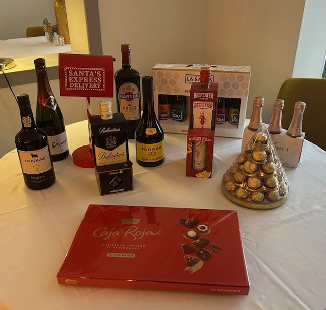 The afternoon began with a cava reception, followed by a choice of starters: soup, paté, prawn cocktail or Camembert bites. Main courses included turkey, beef or salmon, each served with roast and mashed potatoes, honey-glazed roasted parsnips, carrots, Brussels sprouts, red cabbage with a red wine reduction, and a Yorkshire pudding. For dessert, diners could choose from a lemon and passion fruit posset, white chocolate cheesecake, traditional Christmas pudding, chocolate brownie or a liqueur coffee. All of this was washed down with a choice of vino blanco, rosado or tinto.